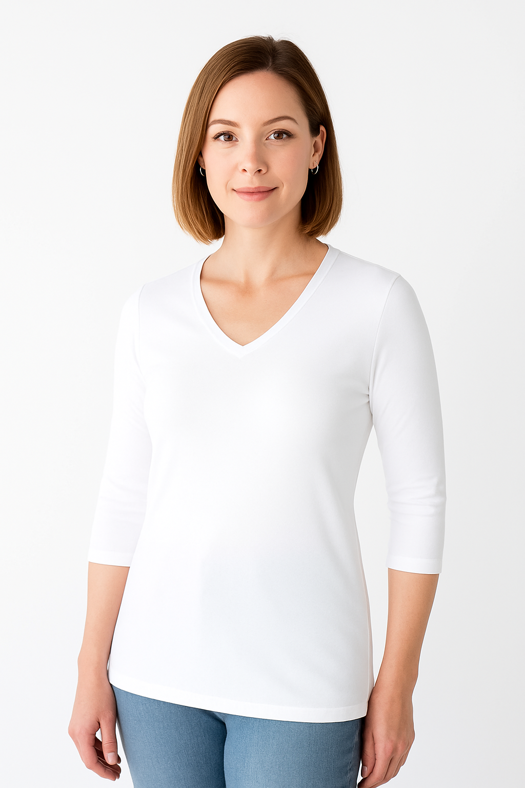 Charlotte V-Neck 3/4 Sleeve Layering Top (74116)