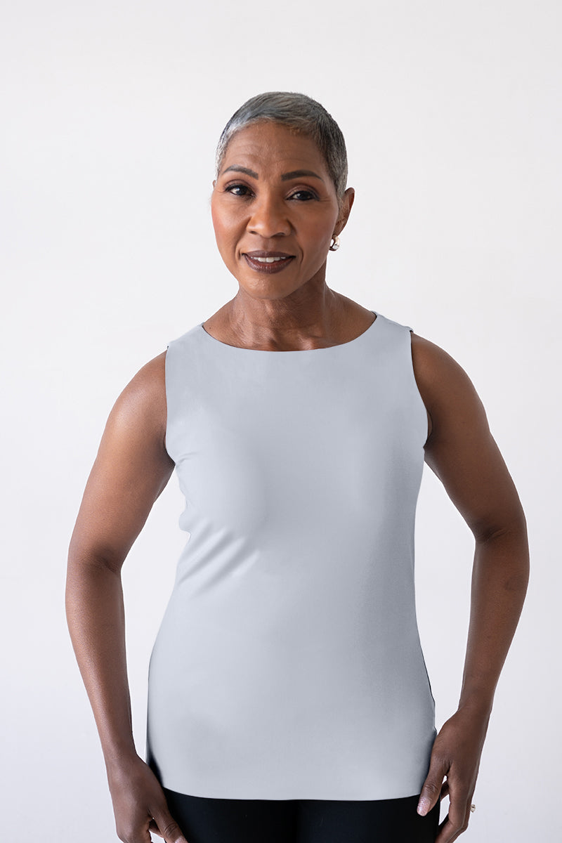 The Christina Sabrina Miracle Shell by JudyP lives up to its name, delivering a flawless, smooth silhouette thanks to its double-front construction that gently conceals and flatters. Designed to be worn on its own or as a sleek underpinning, this bra-friendly essential features the elegant Sabrina neckline for timeless sophistication. With a true-to-size fit, subtle shaping at the hips to prevent ride-up, and a hem that falls just below the hip bone, the Miracle Shell combines comfort, style, and function. Made from wrinkle-resistant, UPF 50+ fabric with moisture-wicking properties, it keeps you cool, confident, and polished all day.