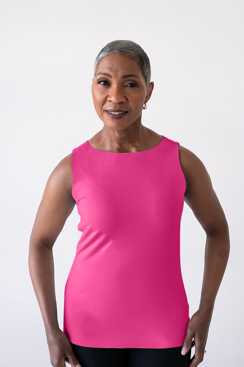 The Christina Sabrina Miracle Shell by JudyP lives up to its name, delivering a flawless, smooth silhouette thanks to its double-front construction that gently conceals and flatters the figure. Designed to be worn on its own or as a sleek underpinning, this bra-friendly essential features the elegant Sabrina neckline for timeless sophistication. With a true-to-size fit, subtle shaping at the hips to prevent ride-up, and a hem that falls just below the hip bone, the Miracle Shell combines comfort, style, and function. Made from wrinkle-resistant, UPF 50+ fabric with moisture-wicking properties, it keeps you cool, confident, and polished all day.