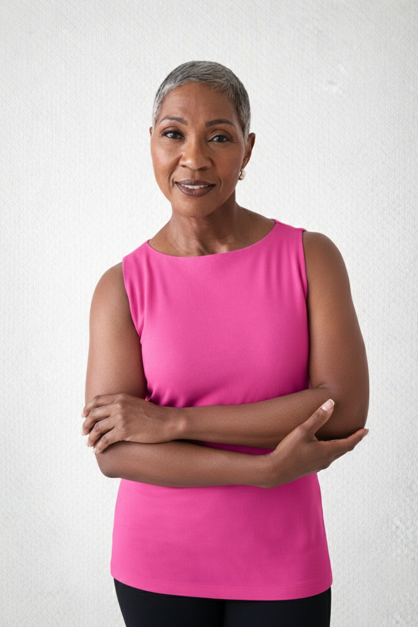 The Christina Sabrina Miracle Shell by JudyP lives up to its name, delivering a flawless, smooth silhouette thanks to its double-front construction that gently conceals and flatters the figure. Designed to be worn on its own or as a sleek underpinning, this bra-friendly essential features the elegant Sabrina neckline for timeless sophistication. With a true-to-size fit, subtle shaping at the hips to prevent ride-up, and a hem that falls just below the hip bone, the Miracle Shell combines comfort, style, and function. Made from wrinkle-resistant, UPF 50+ fabric with moisture-wicking properties, it keeps you cool, confident, and polished all day.