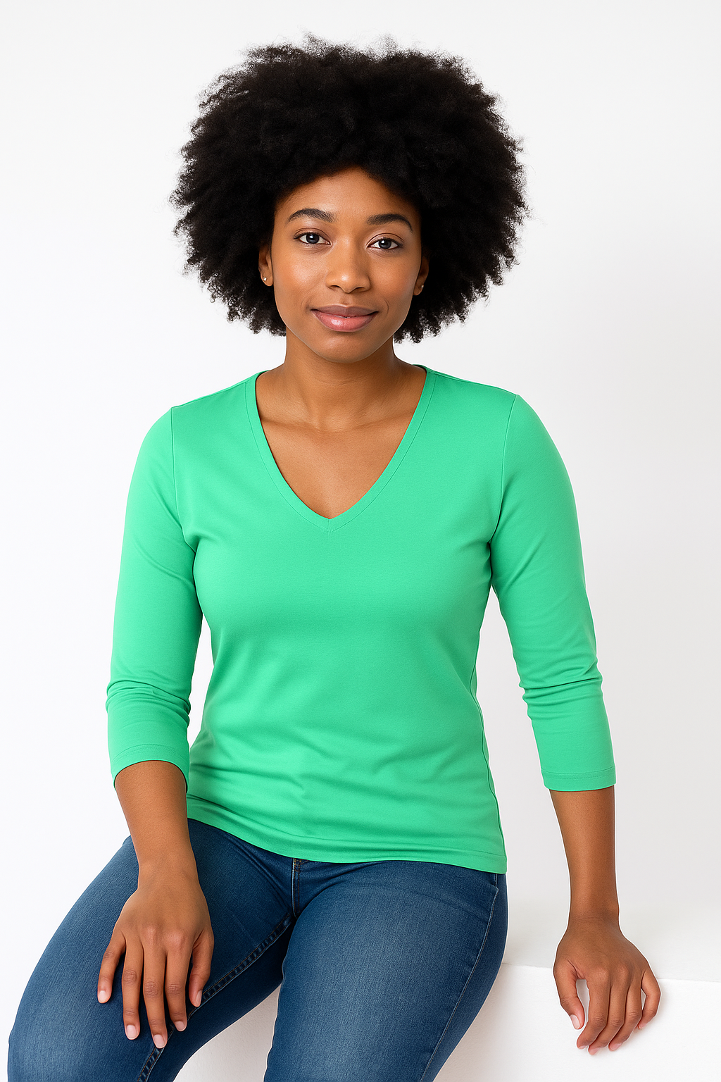 Deborah V-Neck 3/4 Sleeve Top - SALE (54126)