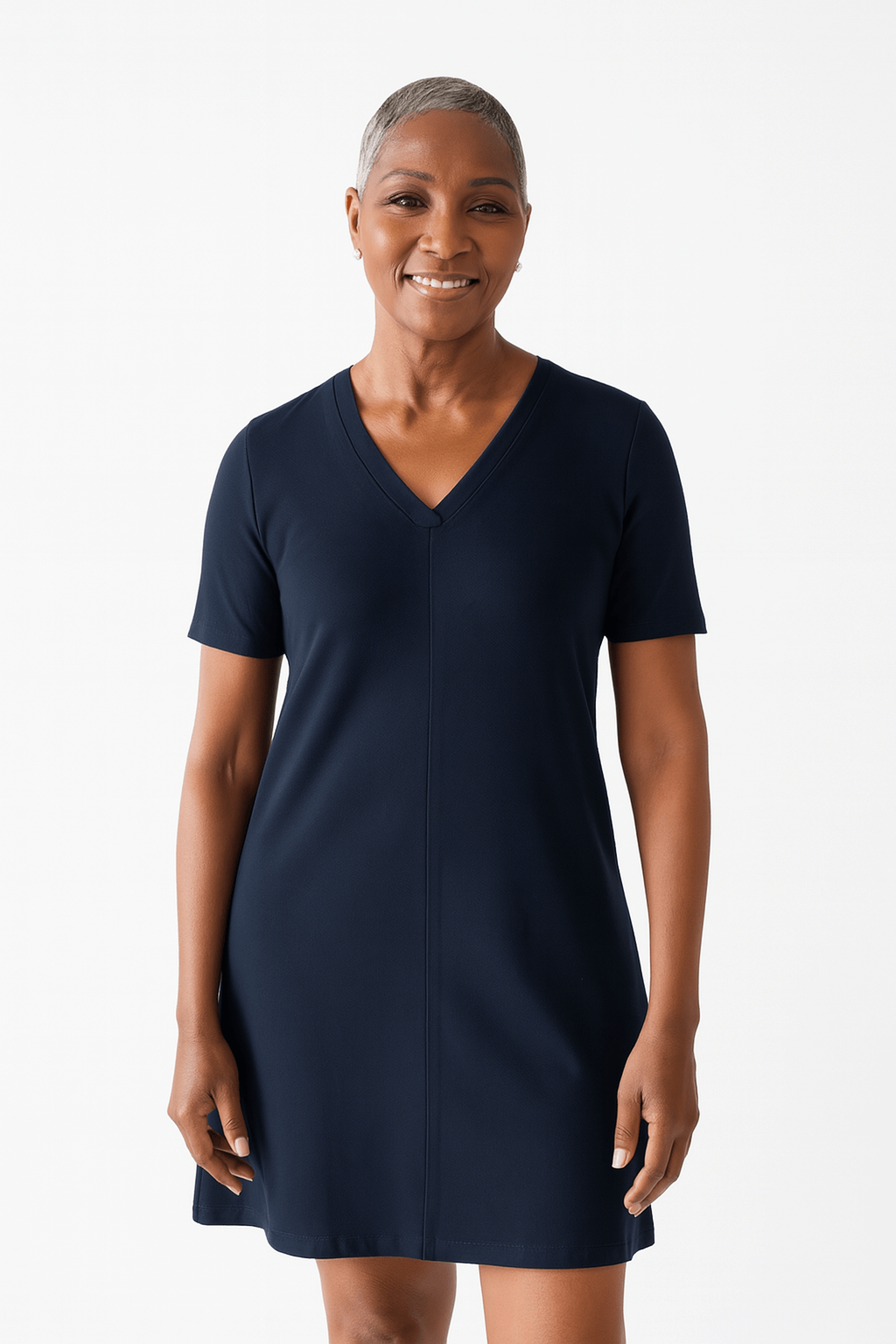 The Paige has smooth, single-layer fabric. This t-shirt dress features a pretty placket neckline that makes it incredibly easy to slip on. This style has a flattering a-line shape that fits comfortably over your hips, creating a feminine silhouette that's sure to dazzle.