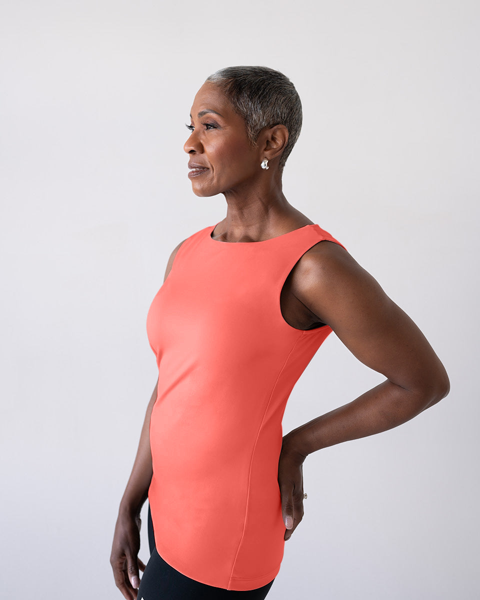 The Christina Sabrina Miracle Shell by JudyP lives up to its name, delivering a flawless, smooth silhouette thanks to its double-front construction that gently conceals and flatters. Designed to be worn on its own or as a sleek underpinning, this bra-friendly essential features the elegant Sabrina neckline for timeless sophistication. With a true-to-size fit, subtle shaping at the hips to prevent ride-up, and a hem that falls just below the hip bone, the Miracle Shell combines comfort, style, and function. Made from wrinkle-resistant, UPF 50+ fabric with moisture-wicking properties, it keeps you cool, confident, and polished all day.
