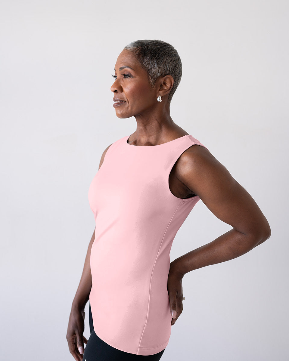 The Christina Sabrina Miracle Shell by JudyP lives up to its name, delivering a flawless, smooth silhouette thanks to its double-front construction that gently conceals and flatters. Designed to be worn on its own or as a sleek underpinning, this bra-friendly essential features the elegant Sabrina neckline for timeless sophistication. With a true-to-size fit, subtle shaping at the hips to prevent ride-up, and a hem that falls just below the hip bone, the Miracle Shell combines comfort, style, and function. Made from wrinkle-resistant, UPF 50+ fabric with moisture-wicking properties, it keeps you cool, confident, and polished all day.