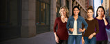 We also realize that every woman’s figure is different. That’s why JudyP includes styles in our “regular fit” (shaped at the waist, fuller at the hips), “relaxed fit” (a little fuller at both the waist and hips), and “loose fit” (loose through the body). All our ladies’ apparel—from our camisoles and tank tops to our long sleeves—is proudly made in the USA. Our garments are wrinkle-resistant, making them easy to care for—machine wash, put them in the dryer for a few minutes—no ironing needed. Shop JudyP today to start enjoying our exquisite fabric and exclusive styles!